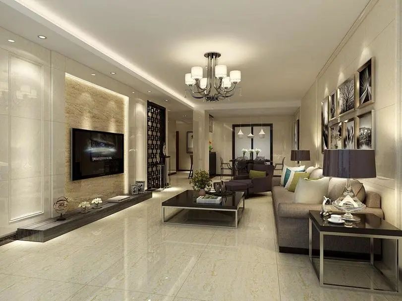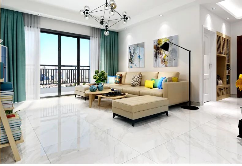 通體大理石表面光滑細(xì)膩,立體通透,紋理接近天然大理石,花色品種豐富,通常呈現(xiàn)出一種奢華、大氣上檔次的效果。實(shí)際上現(xiàn)在客廳用的比較多的是通體大理石和全拋釉瓷磚。