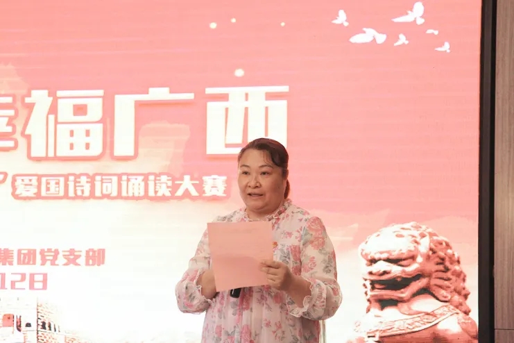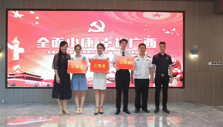 6月12日,在“七一建黨節(jié)”來臨之際,由浦社區(qū)黨委主辦、中庭裝飾集團黨支部協(xié)辦的“全面小康 幸福廣西”愛國詩詞誦讀大賽在集團二樓大廳成功舉辦。南寧市稅務(wù)局機關(guān)黨委、廣西海事局機關(guān)黨委、招商銀行金浦路支行黨支部、竹溪社區(qū)衛(wèi)生服務(wù)中心黨支部、廣西金孟錳業(yè)有限公司黨支部、同方知網(wǎng)黨支部、中庭裝飾集團黨支部、北京外企人力資源黨支部、金浦社區(qū)轄區(qū)各級黨組織參加了本次活動。
