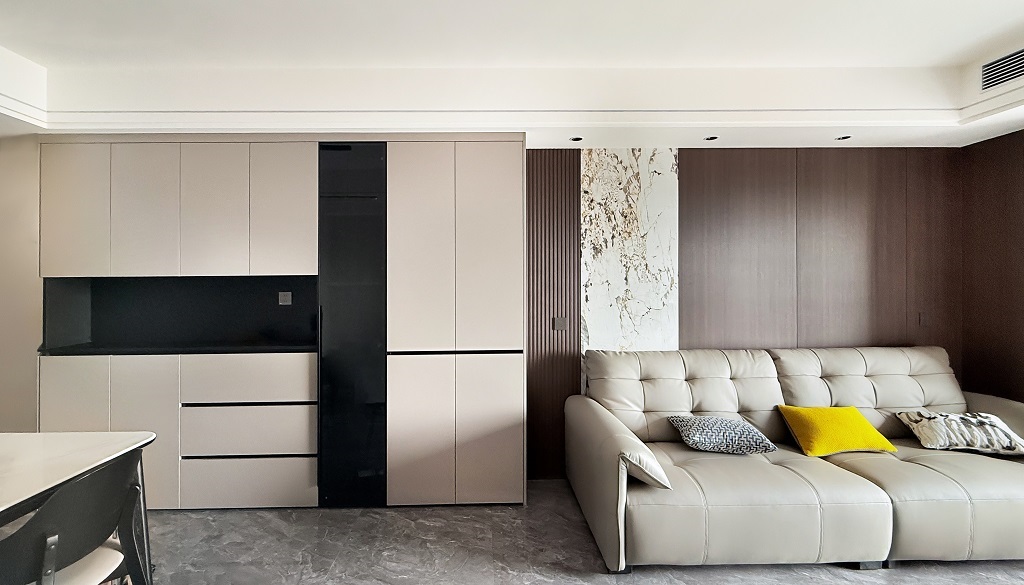 瀏覽量:76整體是簡(jiǎn)約高級(jí)的風(fēng)格,米棕色調(diào)溫柔又大氣,朋友來(lái)都夸很有質(zhì)感!皮質(zhì)沙發(fā)癱著超舒服,亮黃色抱枕一下子讓空間活潑起來(lái)~ 收納做得很隱蔽,家里永遠(yuǎn)整整齊齊。臥室的窗簾一拉,就是專屬的靜謐小天地。在這樣的家里,吃飯、追劇、發(fā)呆,每一刻都好愜意~這大概就是把日子過(guò)成詩(shī)的感覺吧~